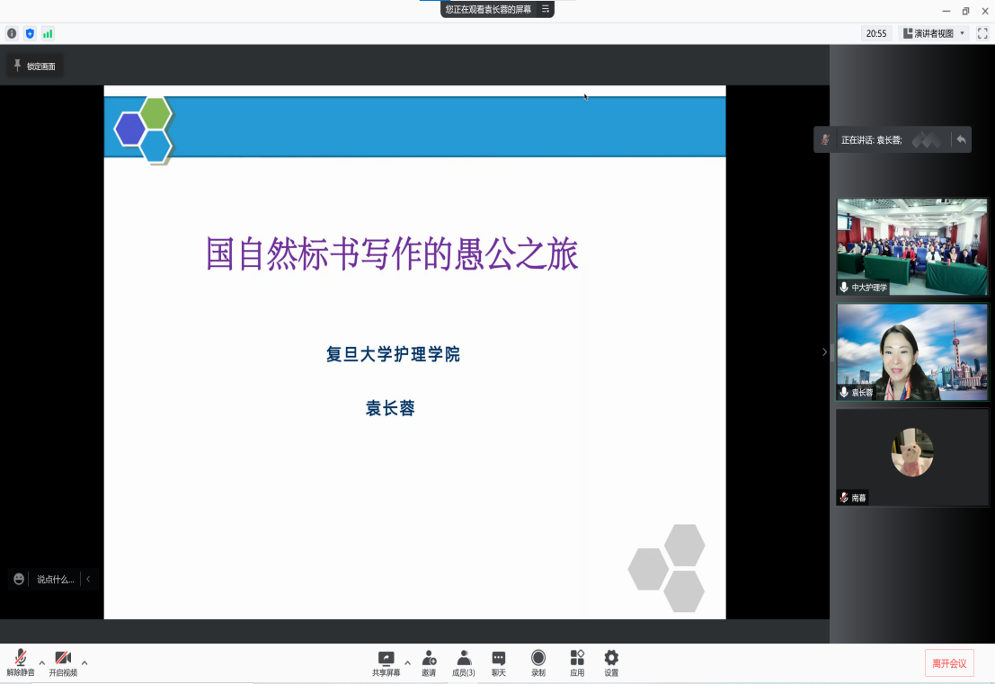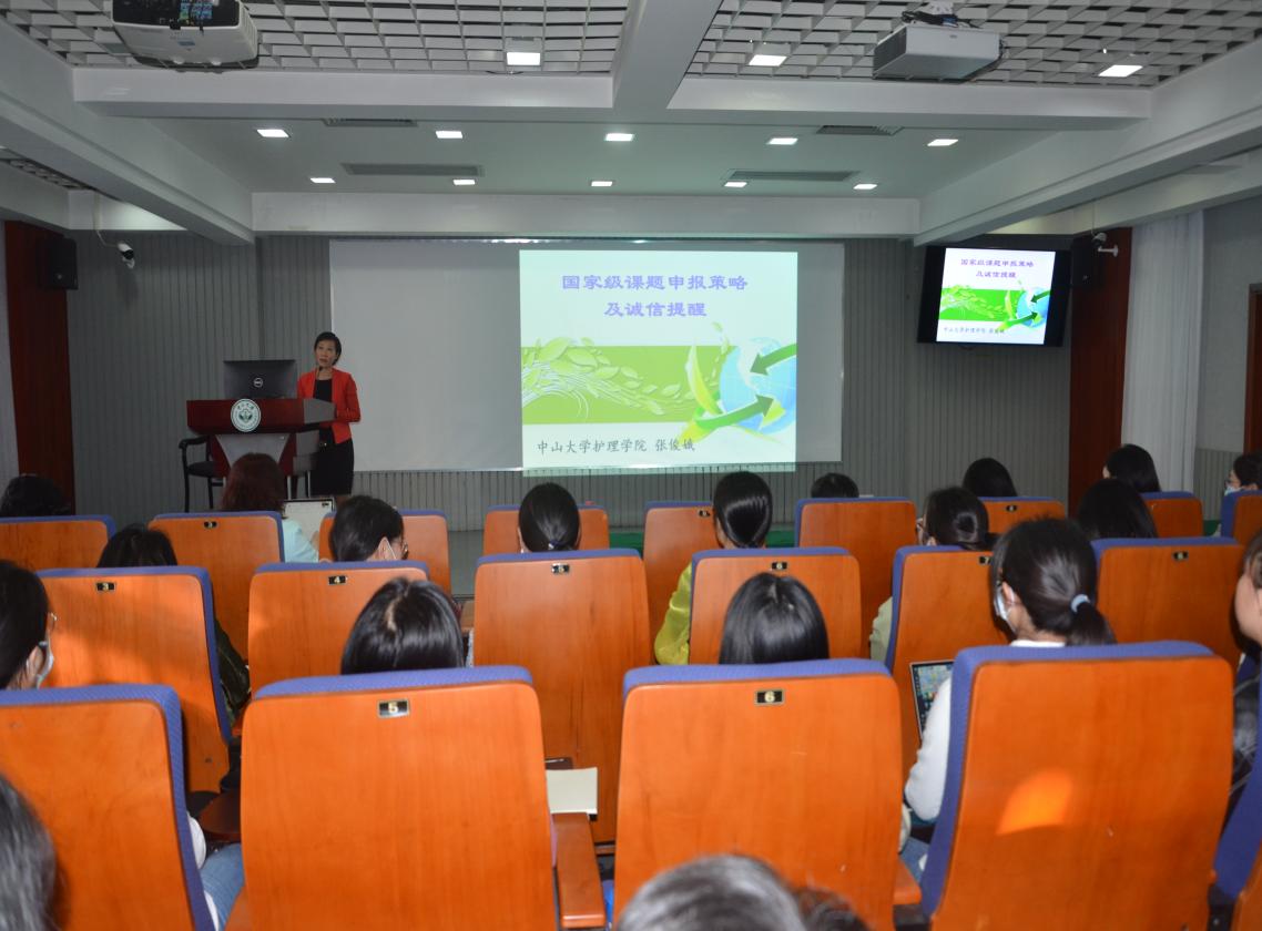 2021年11月30日下午,我院在北校园永生楼4楼讲学厅举行教师科研活动暨研究生学术沙龙(第30期),主题为“国家级课题申报与学术诚信”。本次活动邀请了复旦大学bet365手机版 袁长蓉教授、bet365手机版-bet365中文下载 副院长张俊娥教授担任主讲嘉宾,由bet365手机版 副院长万丽红教授主持。bet365手机版 教师及附属医院护理人员、在读博士生、硕士生、本科生等120多人参加了本次活动。
